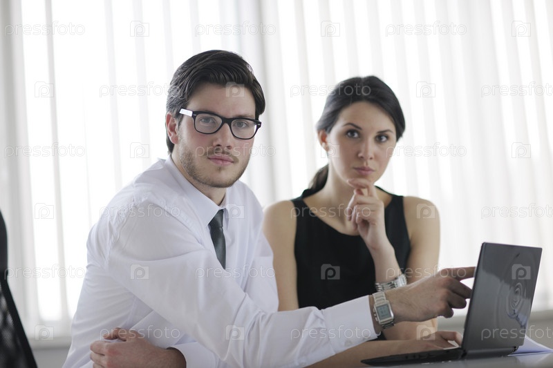 Бизнес-группа службы клиентской поддержки работает в офисе