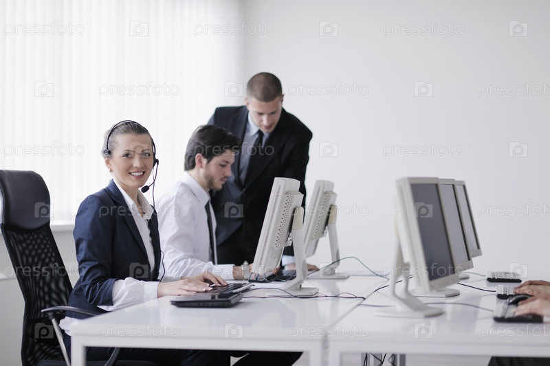 Бизнес-группа службы клиентской поддержки работает в офисе