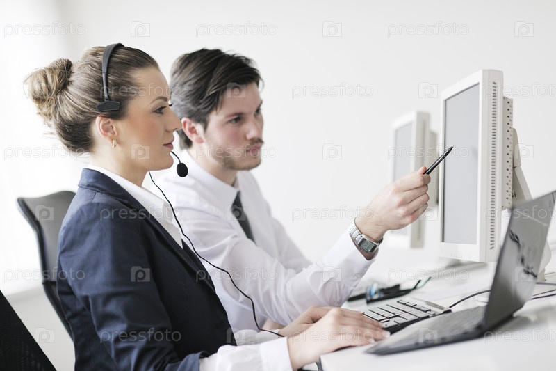 Бизнес-группа службы клиентской поддержки работает в офисе