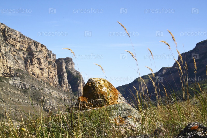 Камень на фоне неба и гор