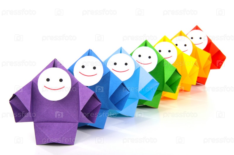 Все цвета радуги. Разноцветные люди-оригами символизируют цвета радуги и изобразительное искусство