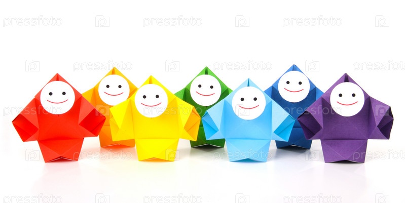 Все цвета радуги. Разноцветные люди-оригами символизируют цвета радуги и изобразительное искусство