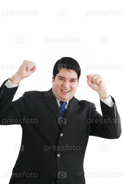 Молодой счастливый бизнесмен поднял руки вверх, концепция успеха и победы