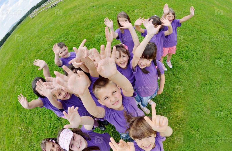 Счастливые дети веселятся на свежем воздухе