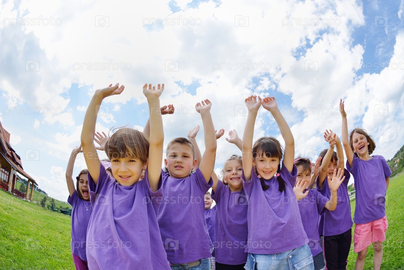 Счастливые дети веселятся на свежем воздухе