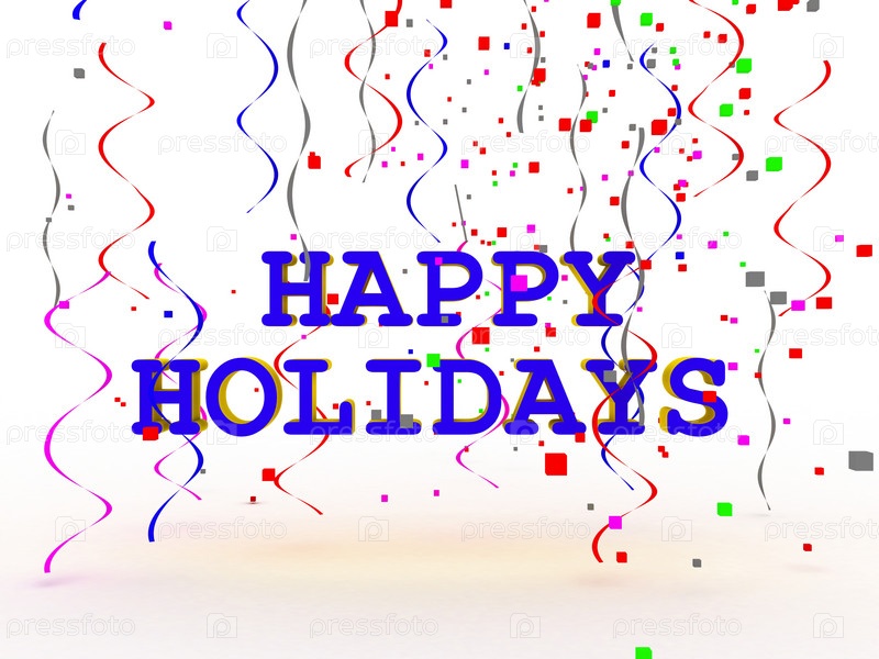 Красочная надпись СЧАСТЛИВЫХ ПРАЗДНИКОВ на белом фоне