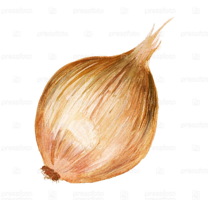 Лук, акварель на белом фоне
