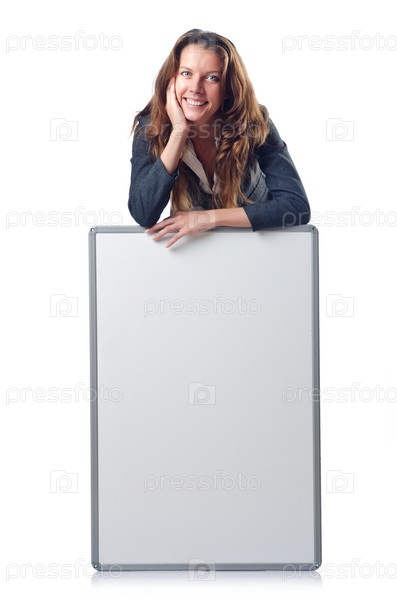 Бизнес-леди с шаблоном для текста на белом фоне