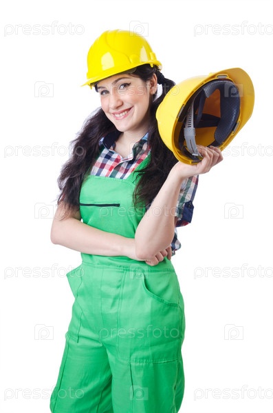 Работница на белом фоне