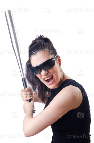 Хулиганка с битой на белом фоне
