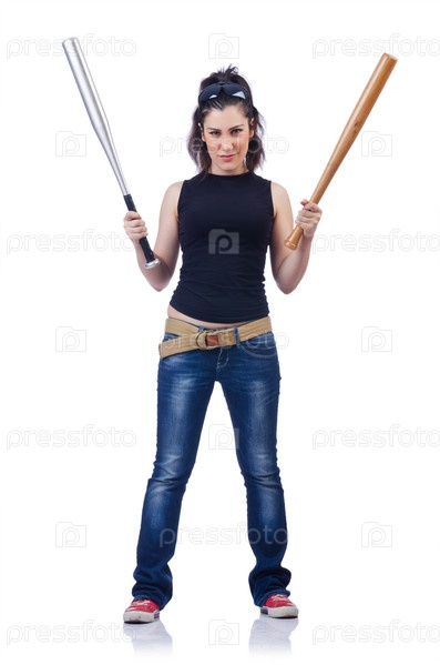 Хулиганка с битами на белом фоне