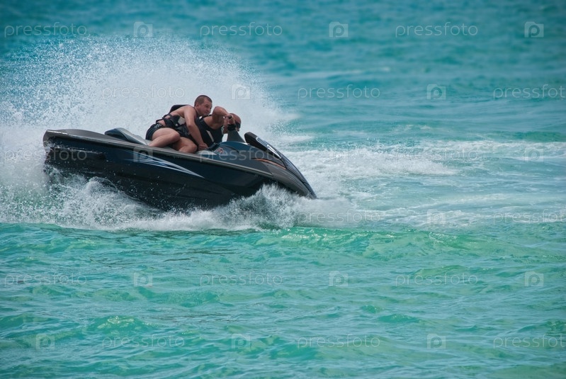 Туристы катаются на гидроцикле