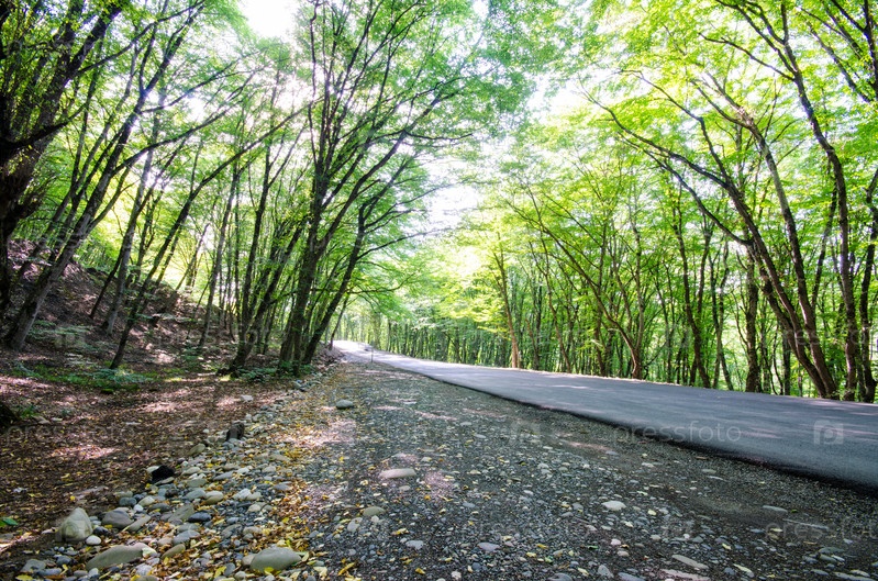 Зеленый лес в яркий летний день