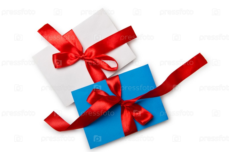Конверты с красочными лентами на белом фоне