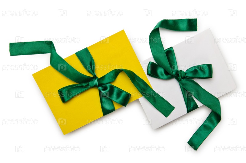 Конверты с красочными лентами на белом фоне