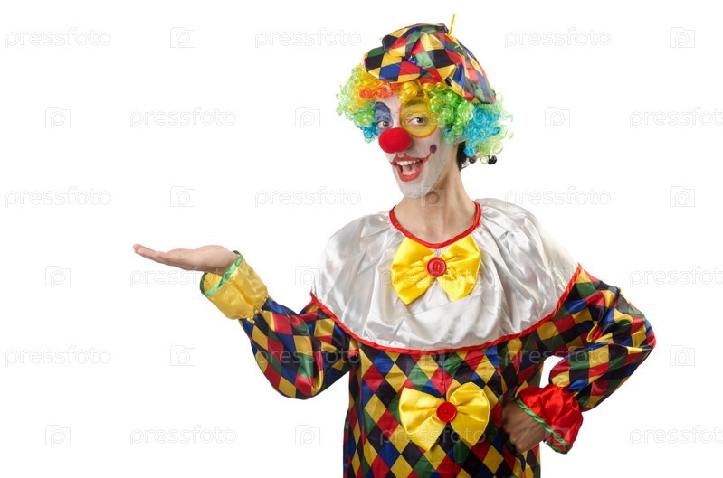 Забавный клоун на белом фоне