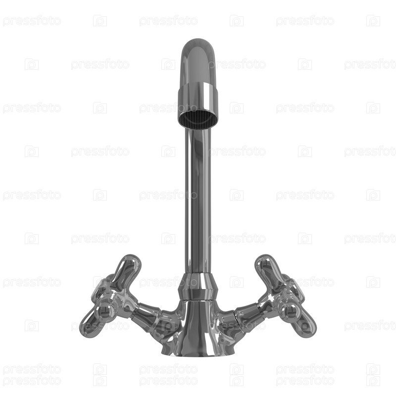 Высокий смеситель с двумя клапанами. Изолированно на белом фоне