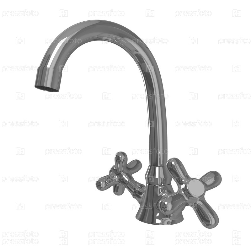 Высокий смеситель с двумя клапанами. Изолированно на белом фоне