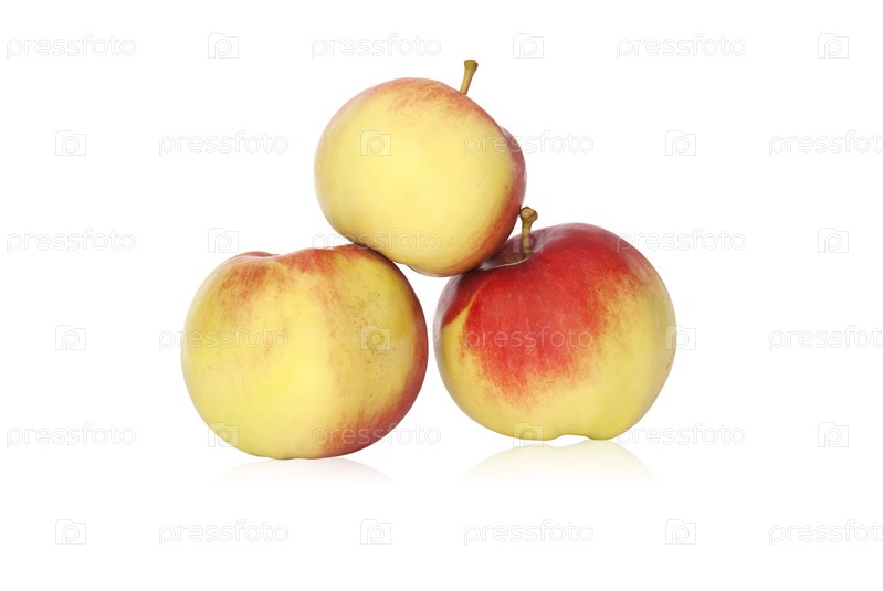 Аппетитные спелые яблоки на белом фоне
