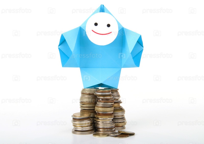 Символическое изображение денег, достатка, сбережений и материального благополучия. Люди-оригами и денежные знаки (монеты и купюры)