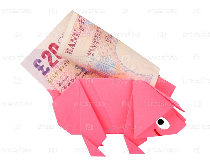 Символическое изображение денег, достатка, сбережений и материального благополучия. Свинка-оригами и денежные знаки (купюры)