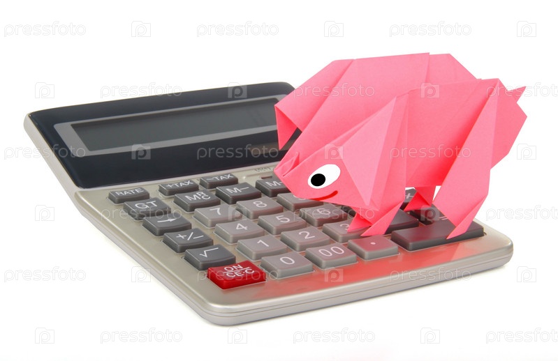 Символическое изображение денег, достатка, сбережений и материального благополучия. Свинка-оригами и калькулятор