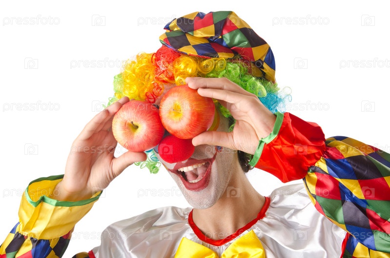 Забавный клоун на белом фоне