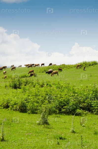 Коровы на зеленом поле