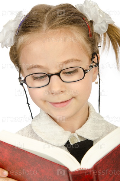 Маленькая девочка с книгами на белом фоне