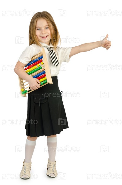 Девочка со счетами на белом фоне