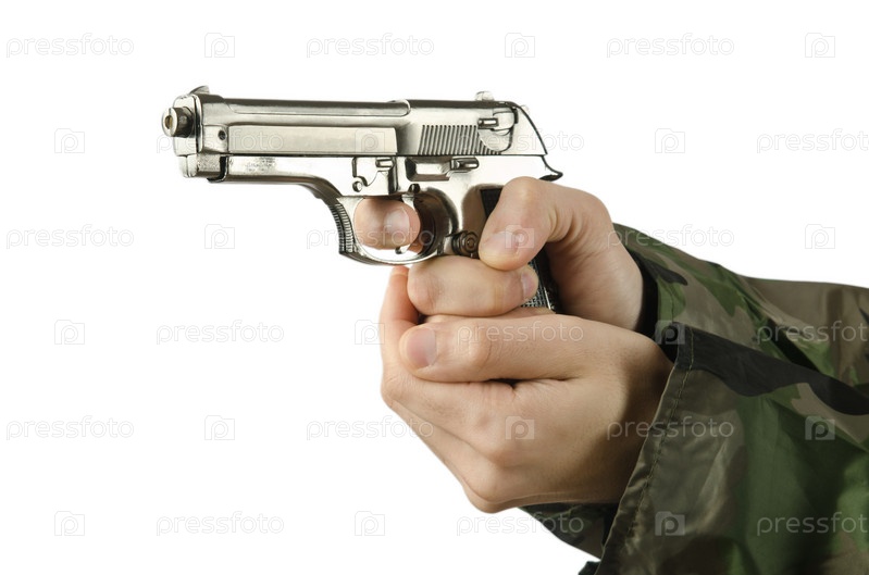 Пистолет в руке на белом фоне