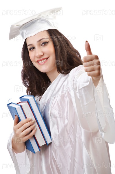 Счастливая выпускница на белом фоне