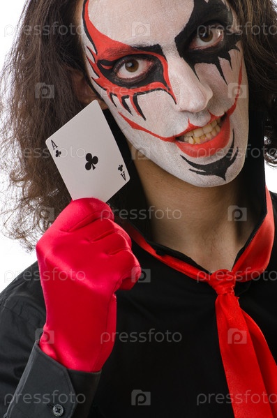 Джокер с картами, изолированный на белом фоне