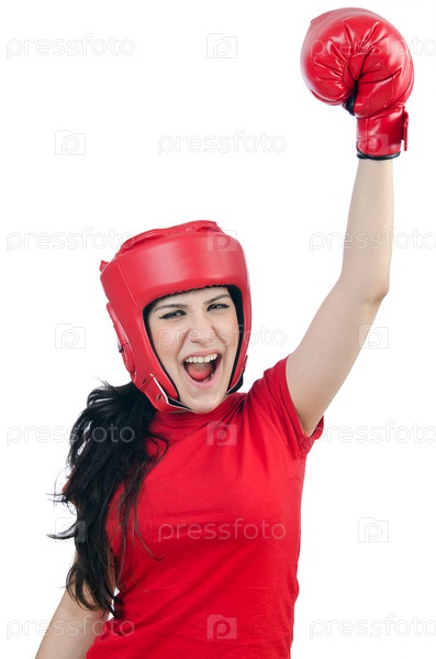 Женщина-боксер на белом фоне