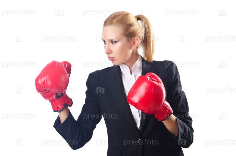 Женщина-боксер, изолированная на белом