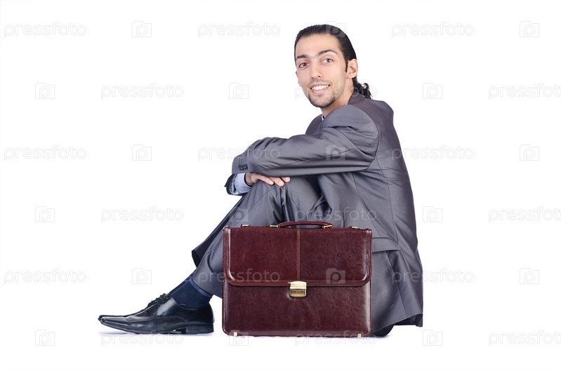 Человек с портфелем на белом фоне