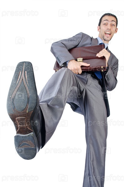 Человек с портфелем на белом фоне