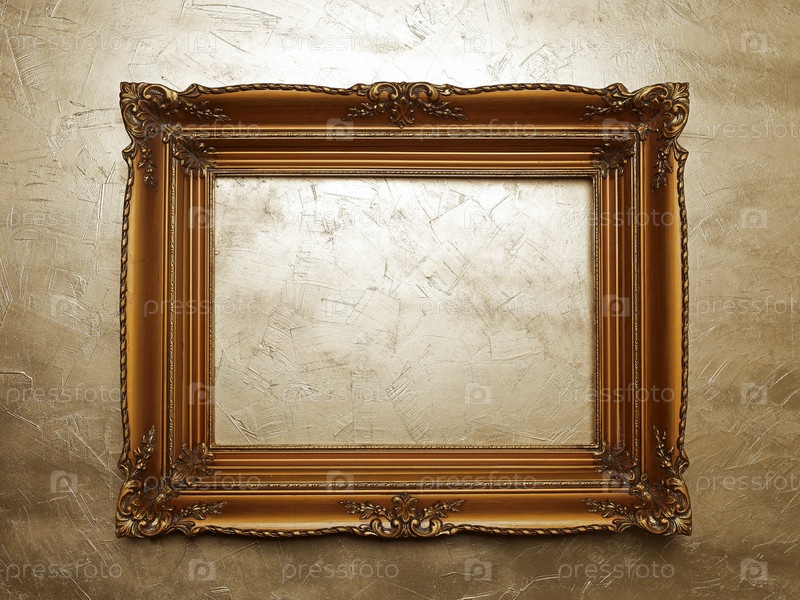 Старая золотая фоторамка на стене