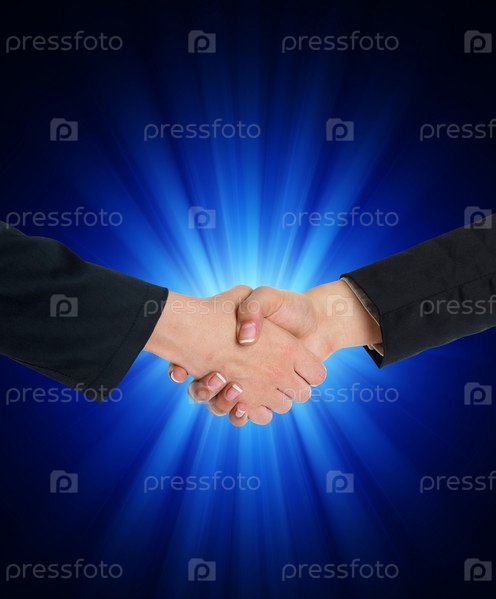 Рукопожатие на фоне синего света