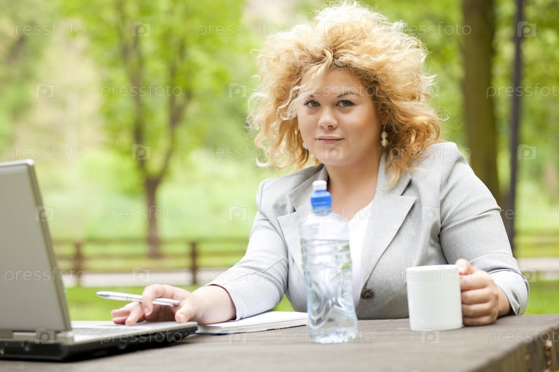 Деловая женщина с ноутбуком в парке