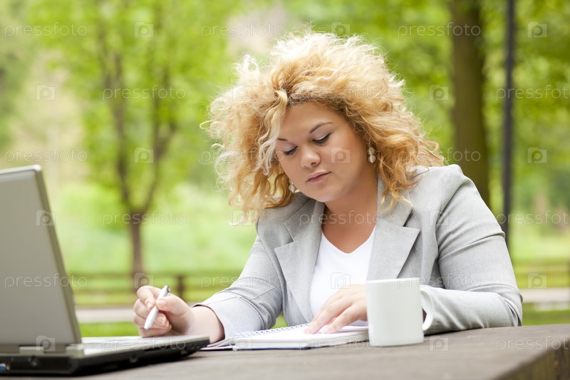 Деловая женщина с ноутбуком в парке