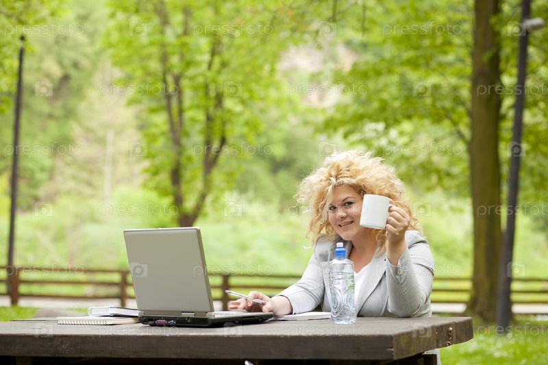 Деловая женщина с ноутбуком в парке