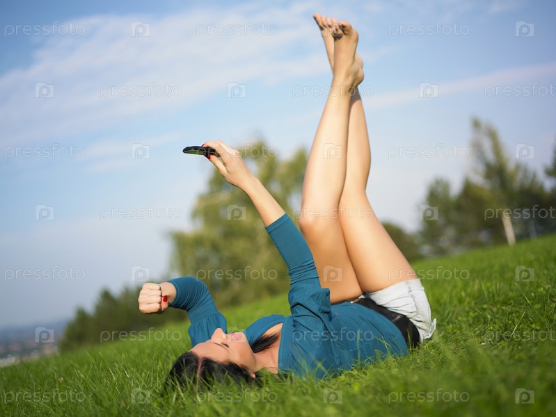 Женщина с телефоном в парке