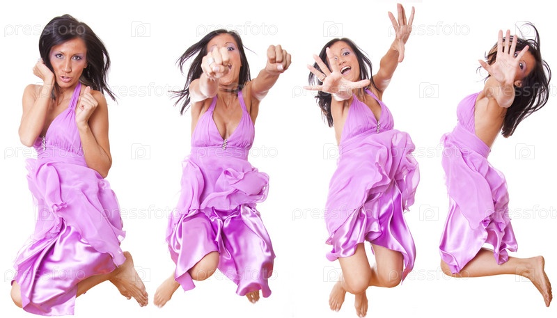 Девушка прыгает, закрывая лицо