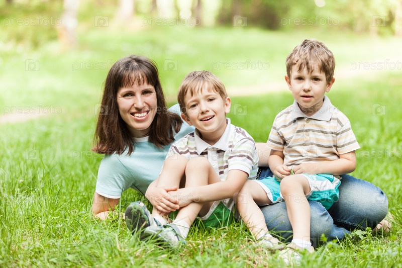 Мама с сыновьями на лужайке