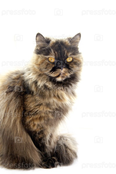 Пушистая кошка на белом фоне