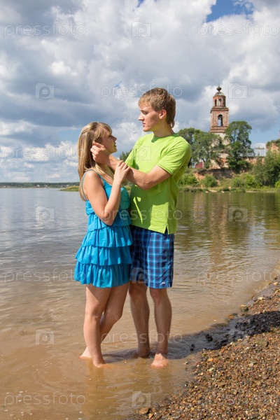 Красивая девушка и молодой парень у реки в сельской местности