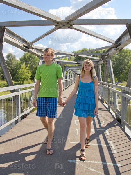 Красивая девушка и молодой парень на реке в сельской местности