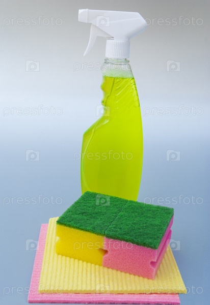 Моющее средство и губки для уборки помещений