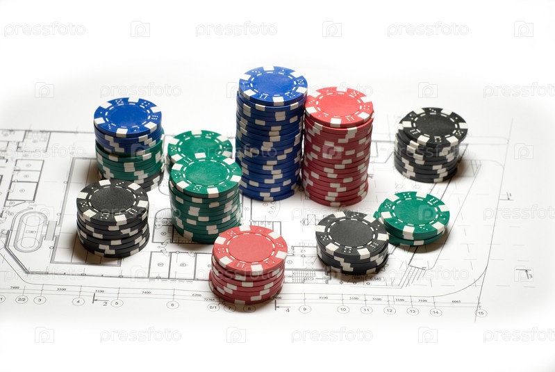 Фишки для игры в покер лежат на строительном чертеже